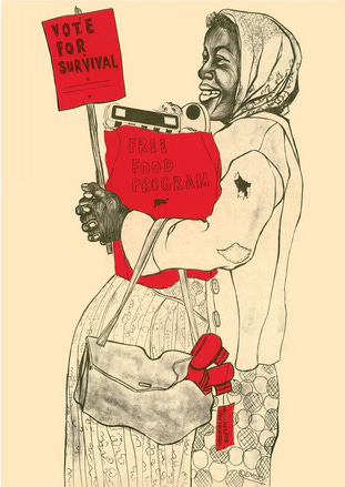 Revolutionary Art is an art that flows from the people. It must be a whole and living part of the people’s lives, their daily struggle to survive….The Revolutionary Artist’s talents are just one of the weapons he uses in the struggle. His art becomes a tool for liberation…the ghetto itself is the gallery for the Revolutionary Artist’s drawings. His work is pasted on the walls of the ghetto, in storefront windows, fences, doorways, alleyways, gas stations, and laundromats. This way the Revolutionary Artist educates the people as they go through their daily routine, from day to day, week to week, and month to month. This way the Revolutionary Artist cuts through the smokescreens of the oppressor and creates brand new images of Revolutionary action for the total community.