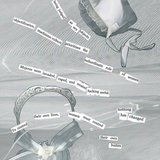 Artist Denisse Marin created collages featuring text from Manifesto of the Erased.